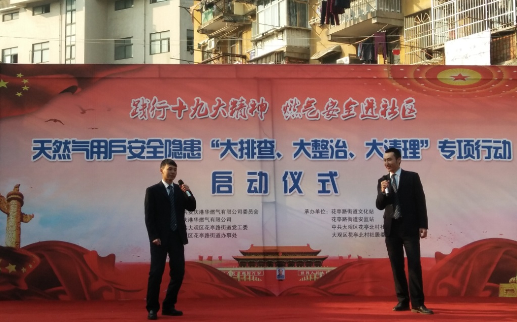 為認(rèn)真貫徹落實(shí)市住房城鄉(xiāng)建設(shè)委、安監(jiān)局、公安消防支隊(duì)三部門(mén)聯(lián)合發(fā)出的《關(guān)于開(kāi)展城區(qū)天然氣用戶安全隱患專項(xiàng)整治工作的通告》(下稱“專項(xiàng)整治通告”)精神,12月12日,針對(duì)全市民用天然氣客戶戶內(nèi)安全隱患“大排查、大整治、大清理”專項(xiàng)行動(dòng)啟動(dòng)儀式在我市花亭北村廣場(chǎng)舉行。這是迄今為止整改力度最大、涉及范圍最廣的一次燃?xì)獍踩[患集中大清理,也是安慶港華踏實(shí)踐行黨的“十九大精神”,推動(dòng)“十九大精神”在工作中落地生根的具體體現(xiàn)。