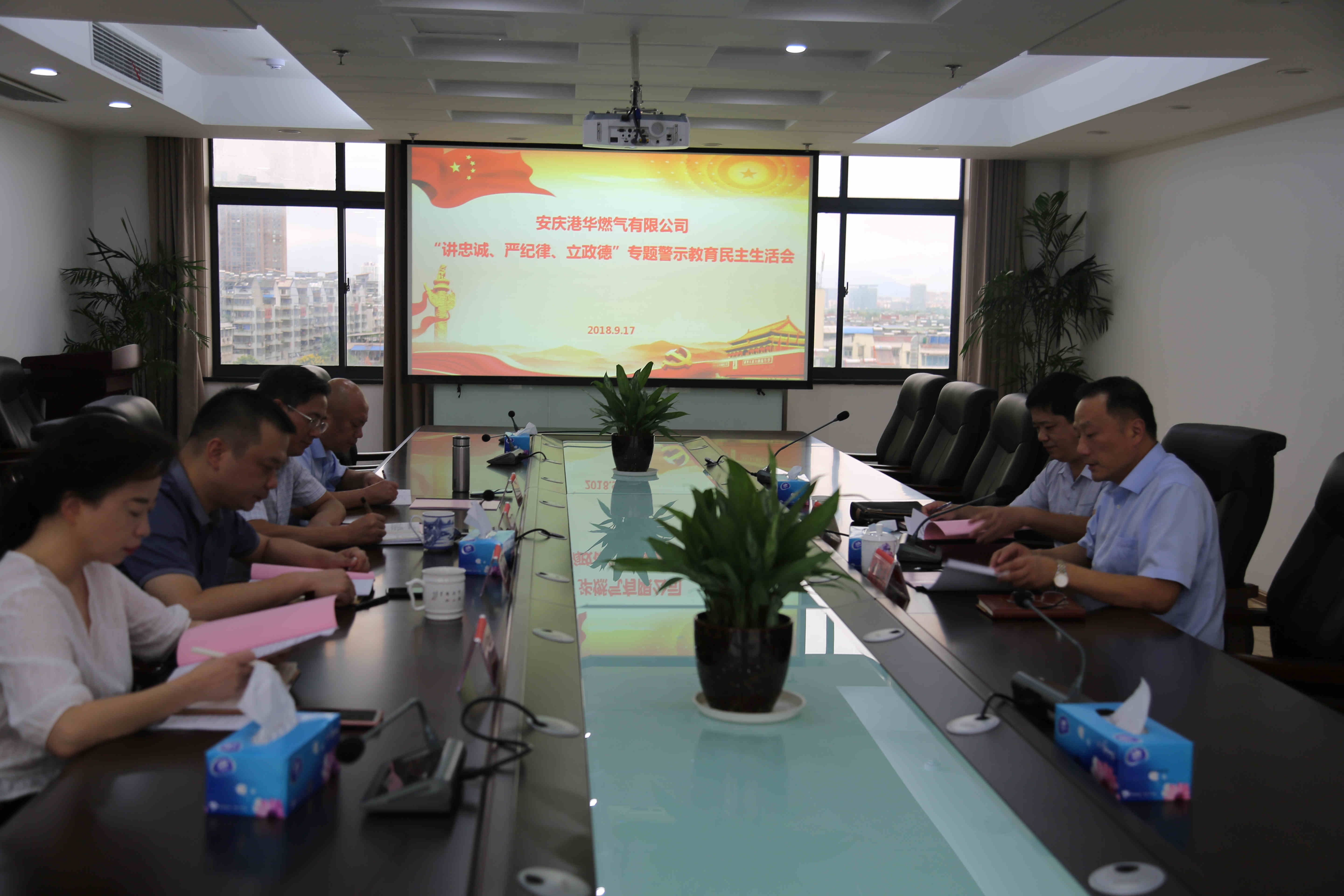 9月17日,安慶港華燃氣有限公司黨委召開“講忠誠、嚴(yán)紀(jì)律、立政德”專題警示教育民主生活會。市城管局黨委委員、副局長姚志蒞會指導(dǎo),公司黨委書記、董事長何族興主持會議。