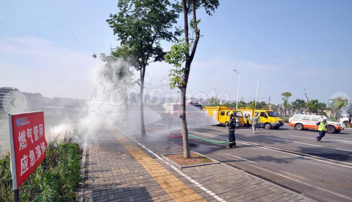 15時演習正式開始,接到報警后,消防、交警、港華及人防搶險人員于10分鐘內(nèi)先后趕至現(xiàn)場,消防人員立即對泄漏區(qū)域進行滅火及水霧稀釋。交警人員對泄漏區(qū)域路段進行交通封閉。市人防協(xié)同消防、交警、港華燃氣專業(yè)搶險隊設立現(xiàn)場聯(lián)合搶險指揮部,迅速組織人員對現(xiàn)場進行緊急疏散、警示警戒、交通導行、燃氣濃度檢測等一系列應急處置措施。在初步控制事發(fā)現(xiàn)場后,經(jīng)現(xiàn)場指揮部研判,決定關閉潛江路地下燃氣進氣閥門并使用防爆風機加速燃氣濃度的稀釋。經(jīng)過有效處置,現(xiàn)場的燃氣泄漏得到控制,周邊空氣中的燃氣濃度逐漸將為0%PPM。15時35分,搶修人員進入管道受損點,對受損的PE200燃氣管道進行修復。經(jīng)過24分鐘的緊張搶修作業(yè),成功完成管道修復。16時,指揮部下令打開燃氣地下管網(wǎng)進氣閥,恢復燃氣供應。16時05分,經(jīng)檢測修復點無燃氣數(shù)值,安慶港華迅速組織客服及市務部相關人員進行用戶端的恢復供氣。16時20分,演習圓滿結(jié)束,現(xiàn)場指揮部對演練進行指導點評,而后,參演人員快速恢復現(xiàn)場、有序撤離。