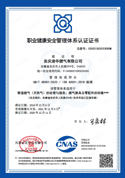 日前,安慶港華順利通過了“質量、環(huán)境、職業(yè)健康安全管理(GB/T19001、GB/T14001、GB/T45001)”三體系認證審核。