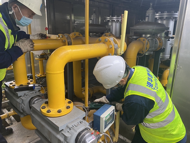 本次演練模擬了某商業(yè)綜合體調(diào)壓柜放散閥接口發(fā)生燃?xì)庑孤?,安慶港華接到險情報告后迅速啟動一級應(yīng)急響應(yīng),派出專業(yè)搶險人員第一時間趕赴現(xiàn)場關(guān)閉燃?xì)庹{(diào)壓站進站總閥、及時切斷氣源,并立即組織人員對調(diào)壓站內(nèi)漏氣點進行修復(fù)。在修復(fù)完成后,再次對周邊過道等公共區(qū)域仔細(xì)檢測燃?xì)鉂舛?,避免燃?xì)鈿埩?。?jīng)多次查漏合格以后,嚴(yán)格依照規(guī)范,進行恢復(fù)供氣。