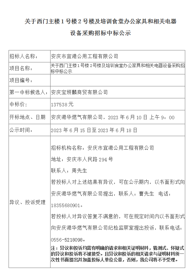 關(guān)于西門主樓1號樓2號樓及培訓(xùn)食堂辦公家具和相關(guān)電器設(shè)備采購招標中標公示