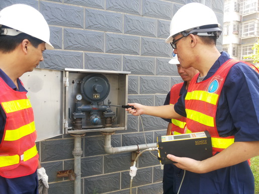 此次應(yīng)急演練模擬在市熱電路某小區(qū),管網(wǎng)巡檢人員進(jìn)行日常巡檢時,發(fā)現(xiàn)該小區(qū)樓棟調(diào)壓器有嚴(yán)重漏氣現(xiàn)象,巡檢人員第一時間控制住現(xiàn)場,拉起警示帶,警示過往行人與車輛遠(yuǎn)離事故現(xiàn)場,嚴(yán)防燃?xì)庑孤┓秶鷥?nèi)有明火產(chǎn)生,同時按照既定的程序向部門負(fù)責(zé)人報告。接到報警后,部門負(fù)責(zé)人以及搶險班組人員即刻到達(dá)事故現(xiàn)場,經(jīng)現(xiàn)場確認(rèn),事故等級為Ⅱ級,并立即啟動事故應(yīng)急預(yù)案。
