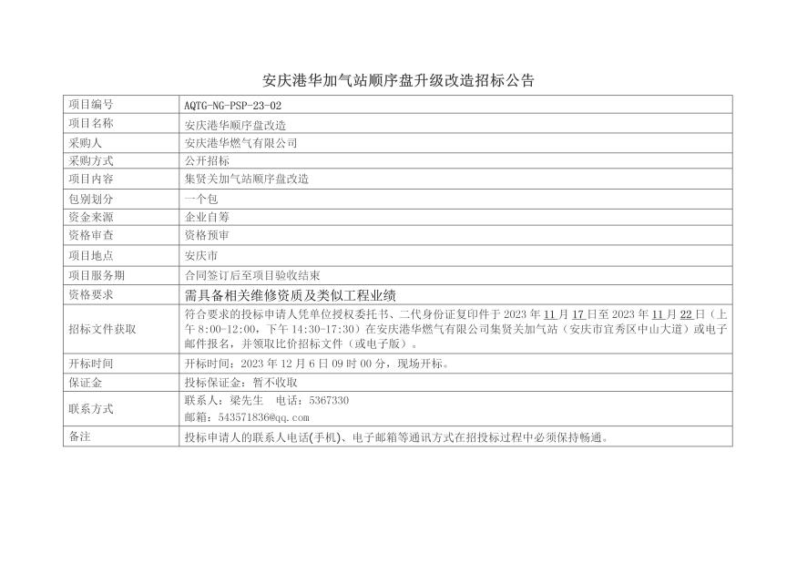 安慶港華加氣站順序盤改造項目招標(biāo)公告