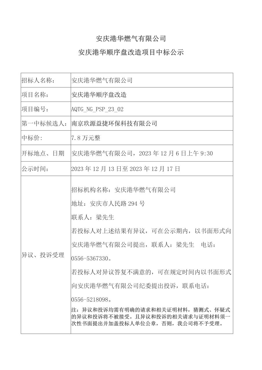 安慶港華順序盤改造項(xiàng)目中標(biāo)公示