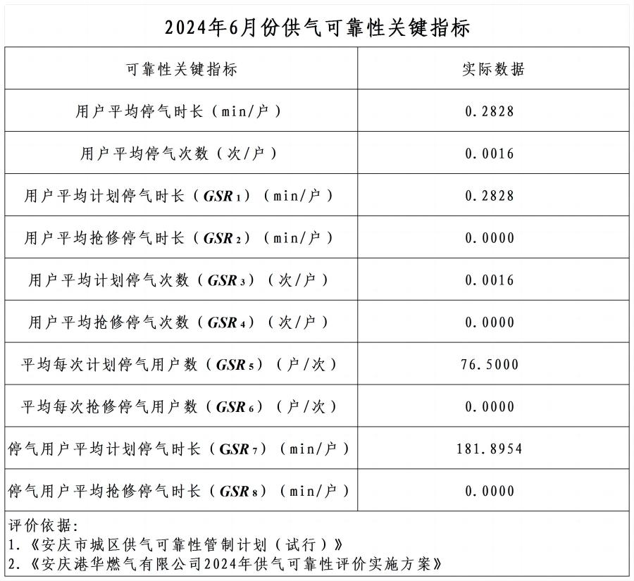 2024年6月份供氣可靠性關(guān)鍵指標(biāo)