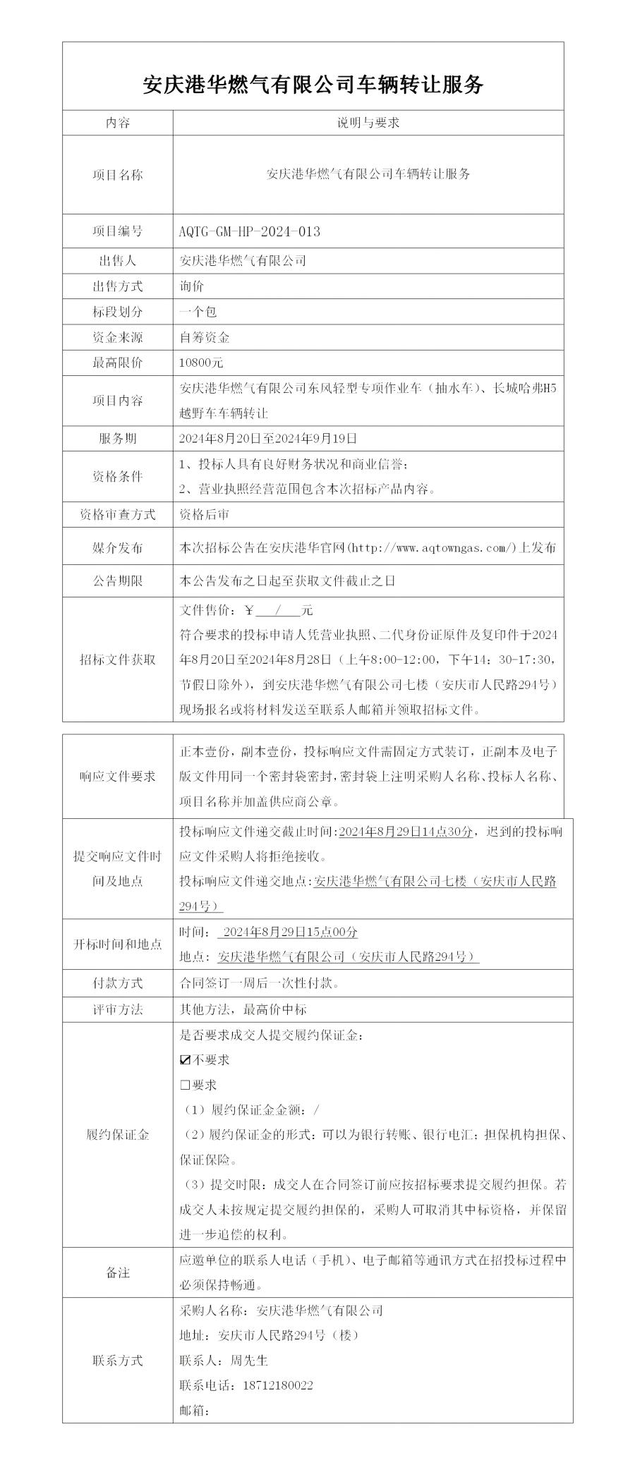 安慶港華燃氣有限公司車輛轉(zhuǎn)讓服務(wù)