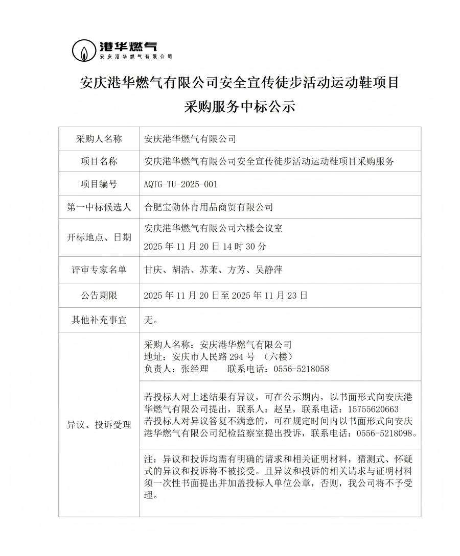 安慶港華燃?xì)庥邢薰景踩麄魍讲交顒?dòng)運(yùn)動(dòng)鞋項(xiàng)目采購(gòu)服務(wù)中標(biāo)公示