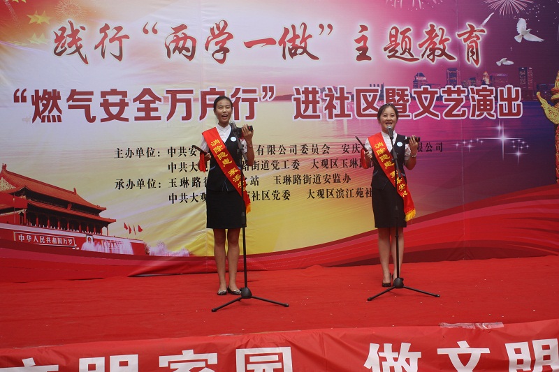 9月9日,安慶港華燃?xì)獍踩叭f戶行”走進(jìn)濱江苑社區(qū),與社居委文藝工作者一道,以豐富多彩的文藝演出形式向社區(qū)居民宣傳安全知識(shí),提升社區(qū)居民燃?xì)獍踩庾R(shí),掀起企民共創(chuàng)燃?xì)獍踩嘛L(fēng)尚。這是今年安慶港華燃?xì)獍矙z整改年攜手社區(qū)開展“消除隱患 家添安心”活動(dòng)以來公司走進(jìn)的第25個(gè)小區(qū)。