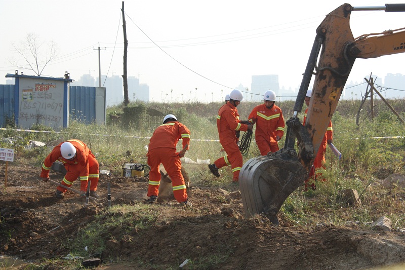 近年來(lái),隨著城市基礎(chǔ)設(shè)施及老舊小區(qū)改造工作不斷加快,工程建設(shè)對(duì)地下天然氣管網(wǎng)的安全運(yùn)行帶來(lái)的威脅亦不斷加大?,F(xiàn)場(chǎng)模擬輝煌路中壓A級(jí)PE160燃?xì)夤艿辣坏谌绞┕挝黄茐模矐c港華維搶修中心在接到搶險(xiǎn)指令后,迅速派出專業(yè)搶險(xiǎn)隊(duì)伍于30分鐘內(nèi)趕到事故現(xiàn)場(chǎng),并有條不紊地開(kāi)展事故現(xiàn)場(chǎng)控制、疏散警戒、現(xiàn)場(chǎng)信息傳遞、事故逐級(jí)報(bào)告、消防聯(lián)動(dòng)配合、搶險(xiǎn)方案制定、儀器裝備操作、停氣復(fù)供、事故現(xiàn)場(chǎng)調(diào)查等程序,通過(guò)多部門(mén)配合,最終成功控制險(xiǎn)情并修復(fù)了受損管道,恢復(fù)正常供氣。