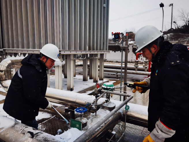 保障輸配勤維護(hù)。為保障低溫雨雪天氣下全市生產(chǎn)生活穩(wěn)定用氣,場站運(yùn)行工高頻次檢查各重要設(shè)備運(yùn)行情況,細(xì)致排查安全問題,一絲不茍確保關(guān)鍵環(huán)節(jié)處于良好運(yùn)行狀態(tài);巡線探漏人員頂風(fēng)冒雪,重點(diǎn)加大了人員密集區(qū)域及民生保障關(guān)鍵點(diǎn)的燃?xì)夤芫W(wǎng)巡查探漏,并對(duì)易受低溫影響的管道、閥井、調(diào)壓設(shè)備及時(shí)采取包裹棉被、排水等防凍措施。